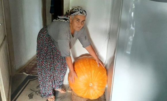 Kızyusuflu köyünde yaşayan Döne Kıstı, bir yakınından aldığı bal kabağı tohumlarını köyde bulunan evlerinin bahçesine ekti. Aradan geçen 3 ay içerisinde yeşeren ve kök salan tohumlardan çıkan kabaklar herkesi şaşırtarak 70 kilo ağırlığa ulaştı. Bahçede çıkan 70 kiloluk kabaklardan birini koparan aile üç kişi yardımıyla kabağı bahçeden eve taşıdılar. Diğer kabağın ise ne kadar daha büyüyeceğini merak eden ve ağırlığından dolayı bahçede bıraktıklarını söyleyen Döne Kıstı, “Bunların tohumlarını Kadirli’den bir yakınımızdan almıştım. Getirdik bahçeye ektik. Bazıları kurudu. Ancak bu iki kabak kök saldı yetişti. Kabağın birini kopardık üç kişi eve mutfağa taşıdık. Diğer kabak bahçede burada büyümeye devam ediyor. İlk başta biz de şaşırdık. Kabağın büyüklüğünü görenler de şaşırıyor. Hatta özellikle kabağı görmeye gelenler var. Gelip cep telefonu ile fotoğraf video çekiyorlar” dedi.