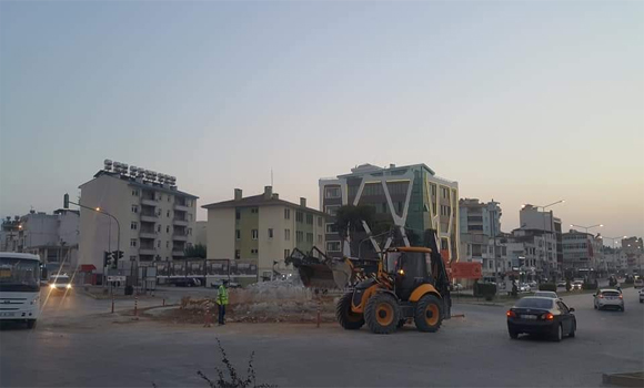 Nato yolunda tamamlanan çalışmaların ardından yine Nato Yolu ile Belediye önündeki yolda başlayan çalışmalar nedeniyle trafik tek yönden sağlanıyor