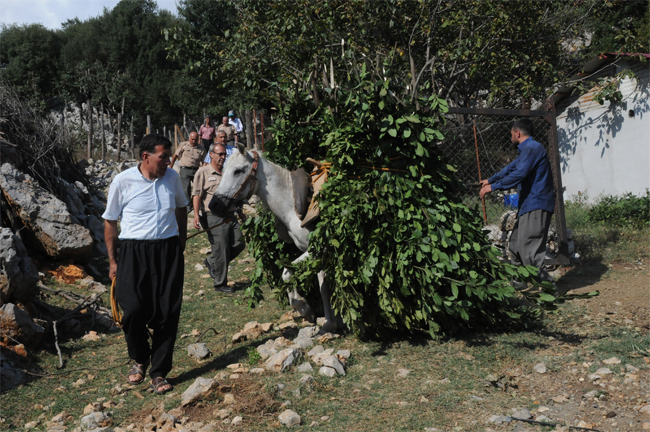Geçimini ormancılık ve hayvancılıktan elde ettiği gelirle sağlayan vatandaşlar, dik yamaçlarda, kayalıkların arasındaki ağaçlardan tahra yardımı ile defne yaprağı toplayan köylüler, 50 ile 80 kilogram arasında değişen desteleri at veya kendi sırtlarında traktörün yanına kadar taşıyorlar.