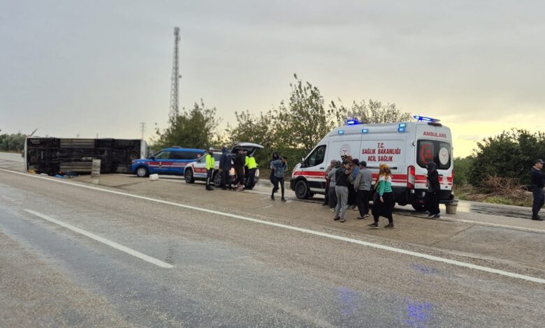 Adana’nın İmamoğlu-Kozan Karayolu Çukurören mevkiinde tarım işçilerini taşıyan minibüsün devrilmesi sonucu 1’i çocuk olmak üzere 11 kişi yaralandı.