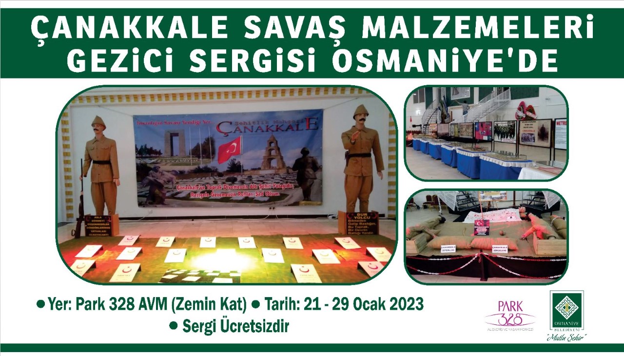 Osmaniye Belediyesi organizasyonunda Çanakkale Savaş Malzemeleri Gezici Sergisi Osmaniye’ye geliyor. Sergi, 21 Ocak – 29 Ocak tarihleri arasında Park 328 alışveriş merkezinde ziyaretçilerini ağırlayacak.