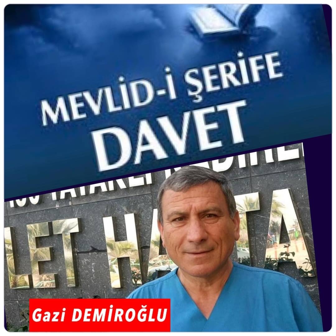 Merhuma bu vesile ile ALLAH’tan rahmet diliyor, ailesinin niyetlerinin kabul, okunacak MEVLİD İ ŞERİF ve dualardan hasıl olacak sevaptan davete katılanların ve merhumun nasiptar olmasını Yüce ALLAH ‘tan temenni ediyoruz.