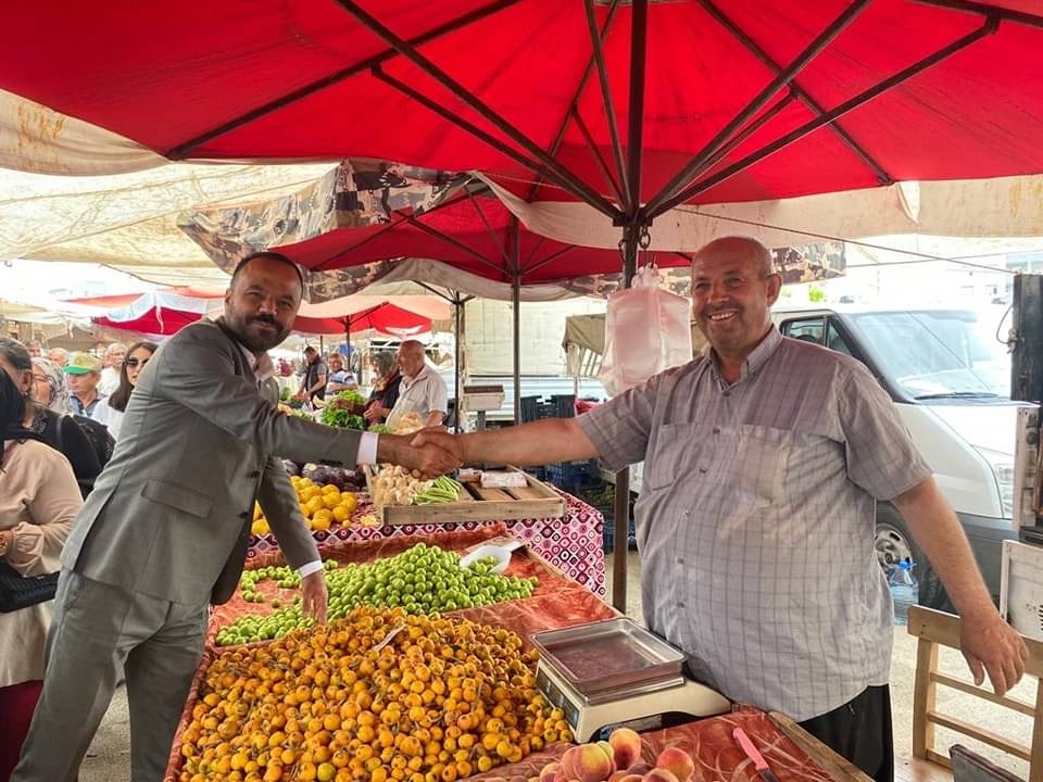 Beraberinde Belediye Başkanı Dr. Ömer Tarhan, Ak Parti ve MHP’li yöneticilerle vatandaşlardan Cumhur İttifakı adayı Cumhurbaşkanı Recep Tayyip Erdoğan’a destek isteyen Hakkoymaz’a semt pazarında esnaflar ve vatandaşlar yoğun sevgi gösterisinde bulundu.