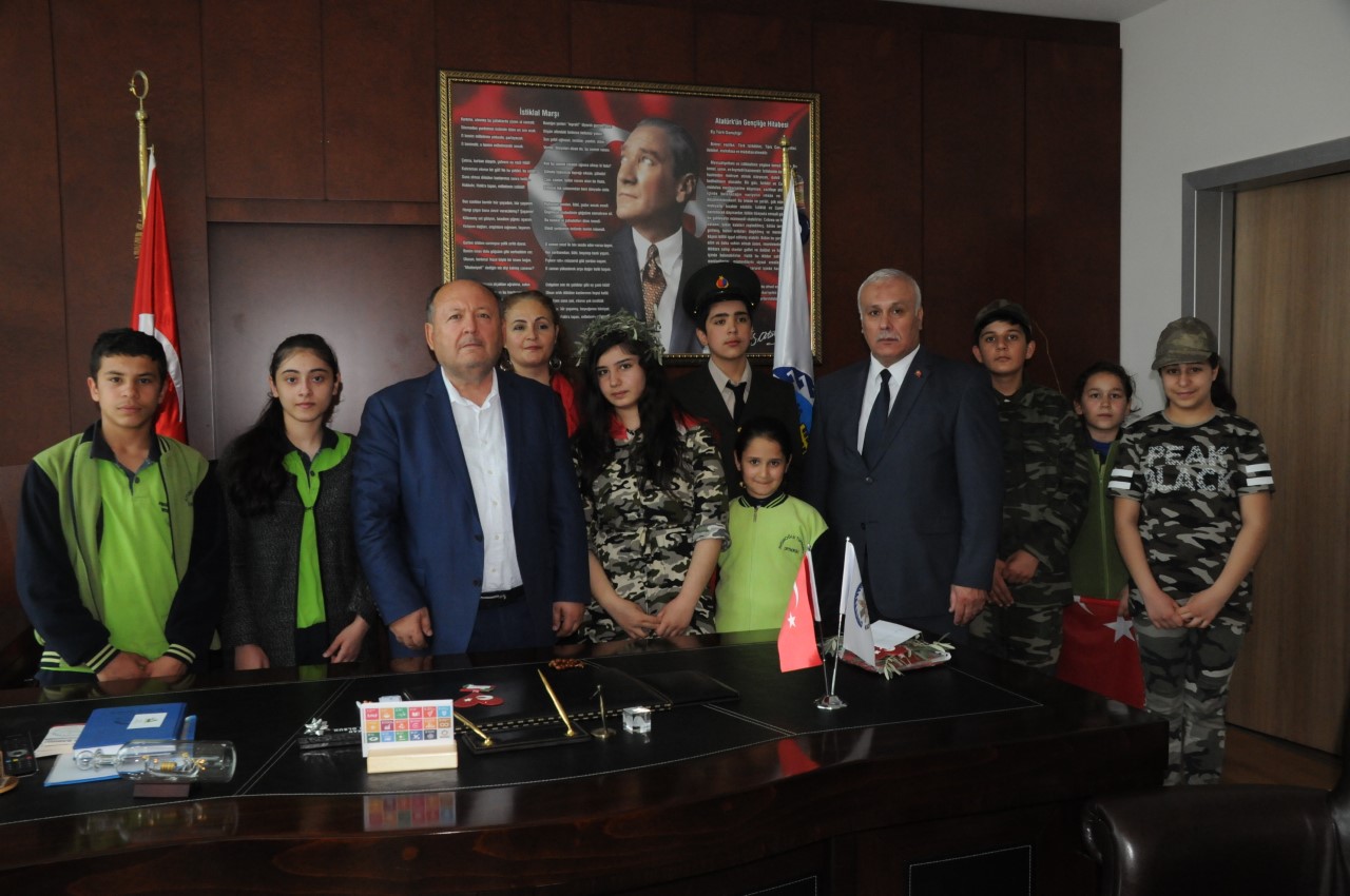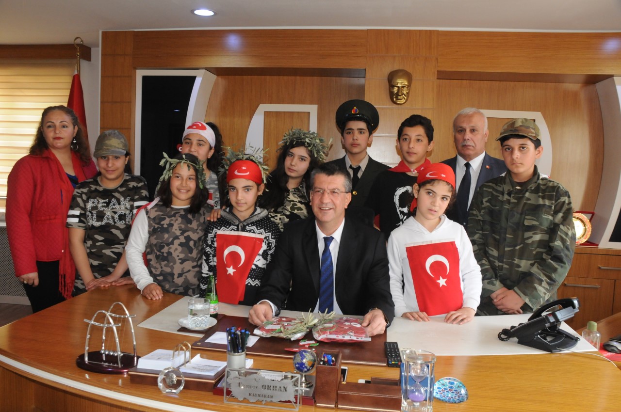 Öğrenciler, Kaymakam Tamer Orhan, Belediye Başkanı Ömer Tarhan, Askerlik Şubesi Başkanı Asteğmen Tahir Samet Demirçelik, İlçe Emniyet Müdürlüğü Karakol Amiri Mustafa Karadaş, Türkiye Harp Malulü Gaziler, Şehit Dul ve Yetimleri Derneği Kadirli Şube Başkanı Tayfun Çiftçi ve İlçe Milli Eğitim Müdürü Sami Cömert’i makamında ziyaret ederek, mektup ve hediyelerini ilettiler.