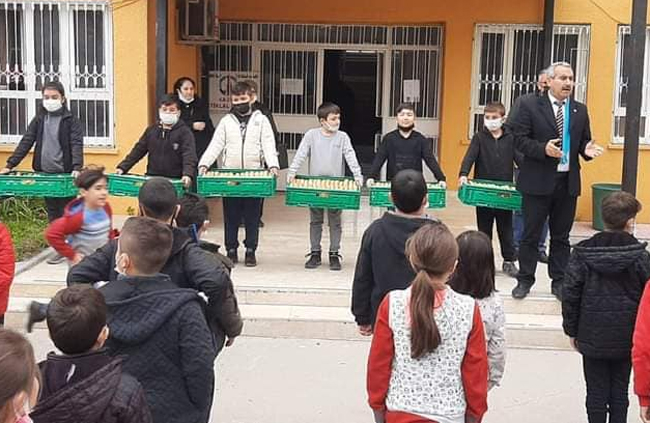 Tüm öğrencilere simitin dağıtıldığı okulda öğrenciler de büyük sevinç yaşadı.