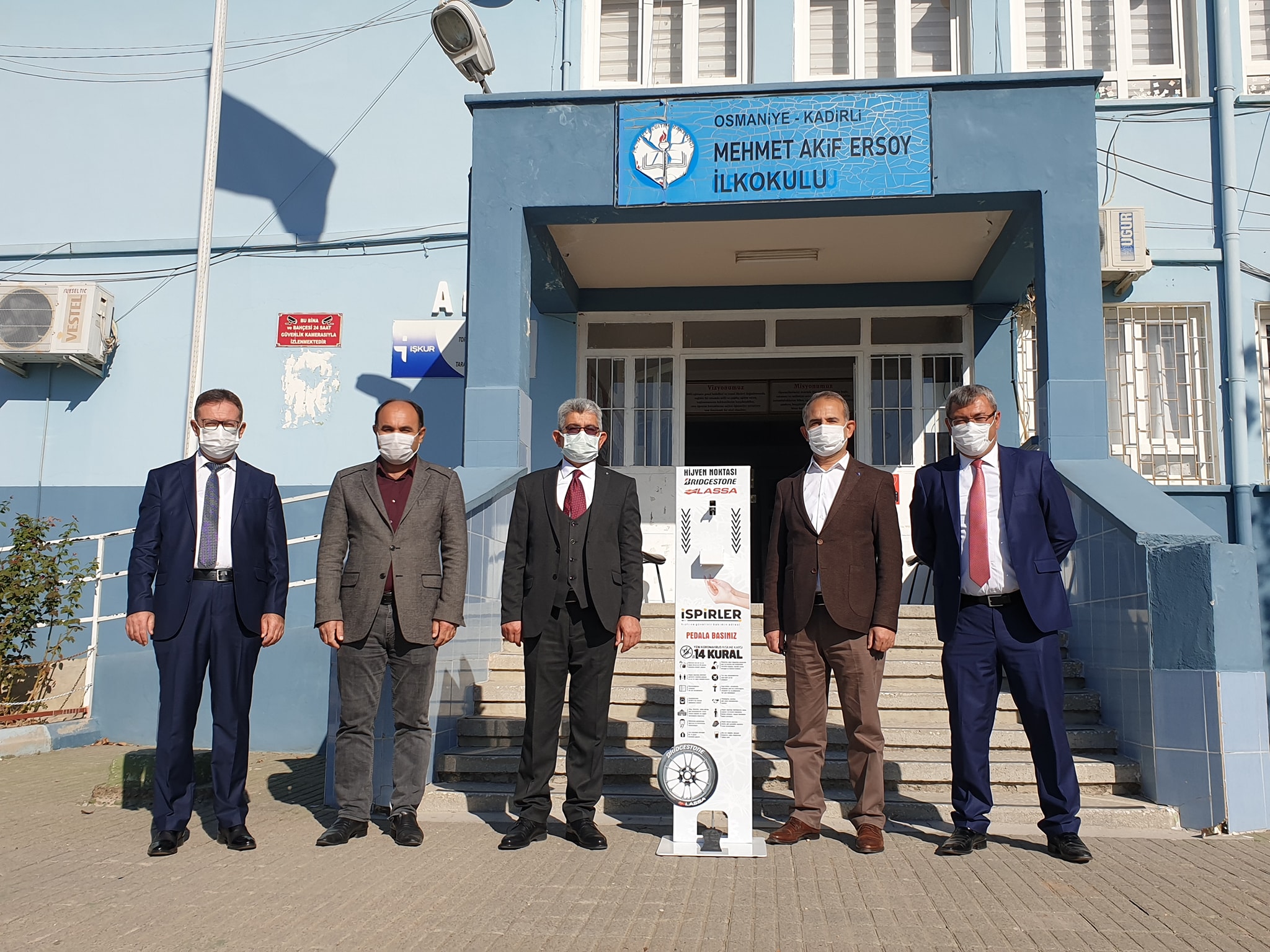 İlçe Milli eğitim Müdürü İlyas Tapsız ve okul müdürleri ise dünya ve ülkemizde etkili olan koronavirüs nedeniyle okullara verdiği hediyelerden dolayı İspirler Otomotiv yetkililerine teşekkür ettiler.