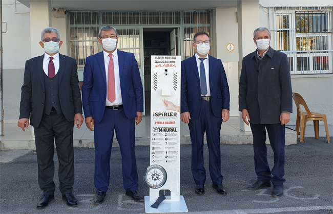 Kaymakam Arık, ülkemizin geçtiği zor dönemde okullara yönelik hazırlanan ayaklı el dezenfektan standı ve dezenfektan aparatı hediyelerinden dolayı İspirler Otomotiv yetkililerine teşekkür etti.