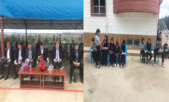 Daha sonra proje kapsamında okul bahçesinde dağıtılan kitaplar, katılımcılar tarafından okundu.Efendi ERKAYIRAN