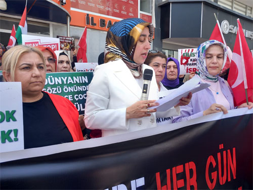 AK Parti Osmaniye İl Başkanlığı önünde bir araya gelen AK Parti İl Kadın Kolları adına konuşan Kadın Kolları Başkanı Sultan Okur, pazar günü Anneler Günü olduğunu hatırlattı. Okur, “Günlerdir her yerde tatlı bir telaş yaşanıyor. Anneler Günü öksüzlerin ve evladını kaybeden annelerin de ağır imtihanıdır. Bir yandan da dünyanın orta yerinde, yanı başımızda Filistin’de, Gazze’de, Refah’ta yaşanan soykırım nedeniyle anne olmak hiç bu kadar zor olmamıştı. Biz bugün okuldan gelecek çocuklarımızı, Gazzeli anneler ise çocuklarına verecek bir lokma ekmeği bekliyor. Bizler karışmasın diye çocuklarımızın defterlerine, kitaplarına isim yazarken, Gazzeli anneler ise cesetleri teşhis edilebilsin diye çocuklarının kollarına isim yazıyor. Bir kadın, bir anne olarak çok net ifade ediyorum: her can tek, her can biricik ve bir cana kıyan tüm insanlığa kıymış gibidir. Filistin Sağlık Bakanlığı’nın 5 Mayıs’ta yaptığı açıklamaya göre; İsrail’in 7 Ekim’den bu yana Gazze Şeridi’ne düzenlediği saldırılarda 34 bin 683 kişi öldü, 78 bin 18 kişi yaralandı. Birleşmiş Milletler kadın biriminin raporuna göre Gazze’de 9 bin kadın öldü. Günde ortalama 63 kadın hala ölüyor ve bunların 37’si ise anne. Kayıp ve akıbeti bilinmeyen kadınların sayısı 2 bin 100, peki ya sağ kalan ve yaşam savaşını sürdürmeye, çocukları için hayata tutunmaya çalışan kadınlar, anneler. Filistin’de sağlık sisteminin çökmesi nedeniyle yaklaşık 60 bin hamile kadın risk altında. Her gün 180 anne ölümle burun buruna doğum yapıyor. Ne diyordu Gazzeli anne? ‘Ben 6 çocuk doğurmakla yükümlüyüm. Çünkü 2’sini İsrail öldürecek, 2’si eve ekmek getirmek için çalışacak, 2’si de okusun ki ülke için işe yarasın’ Ya anne olduğunu göremeden, karnında bebeği ile ölen kadınlar, ölen annesinin bedeninden ameliyatla alınan bebekler… Zor şartlar, ölümle burun buruna yaşamak ve yetersiz beslenme nedeniyle erken doğum yapan, sütü kesilen anneler… Gazze’deki her 5 kadından 4’ü, aile bireylerinden en az birinin üst üste iki öğün yiyemediğini ifade ediyor. Çocuklar, annelerinin gözü önünde eriyor” dedi.