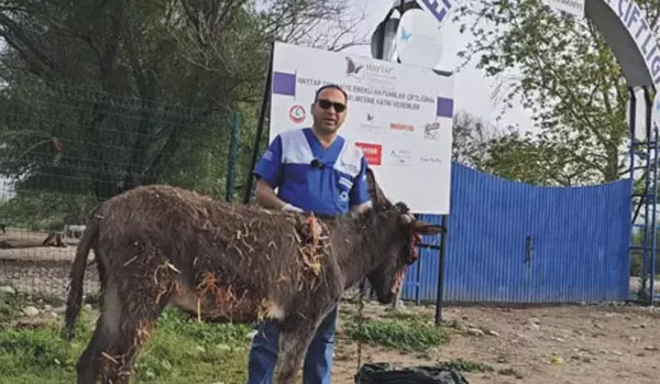 Sivas’ta, vücudundaki tümöral yapılar nedeniyle bir ağaca bağlanarak terk edilen ve yağmur altında aç susuz bulunan eşek kurtarıldı. HAYTAP Sivas Temsilcisi Özge Nihan Çubukçu, bölgeye giderek eşeğin tedavisi için Osmaniye’deki Emekli Hayvanlar Çiftliği tesisine transferini sağladı. Uzun yolculukla yorgun düşen eşeğin bakım ve tedavisine başlandı.