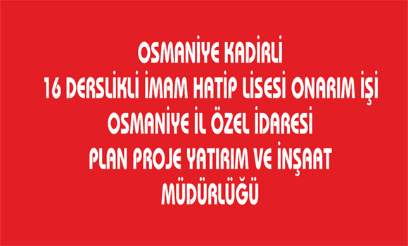OSMANİYE KADİRLİ 16 DERSLİKLİ İMAM HATİP LİSESİ ONARIM İŞİ OSMANİYE İL ÖZEL İDARESİ PLAN PROJE YATIRIM VE İNŞAAT MÜDÜRLÜĞÜ