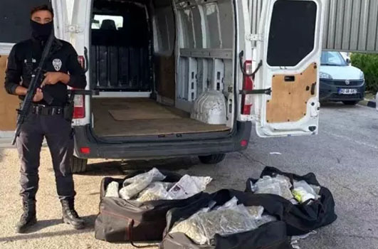 Osmaniye İl Emniyet Müdürlüğü ekipleri, uyuşturucuyla mücadele çalışmaları çerçevesinde E90 otoyolunda seyir halinde olan minibüsü dinlenme tesisinde oluşturulan uygulama noktasında durdurdu. Minibüste hassas burunlu narkotik köpeği ile yapılan aramada 46 kilo 200 gram Skunk ve 900 gram toz esrar ele geçirildi.