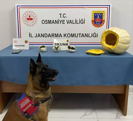 İl Jandarma Komutanlığı ekipleri tarafından uyuşturucuyla mücadele kapsamında, Bahçe ilçesi Osmaniye-Gaziantep Otoyolu Osmaniye istikametinde uygulama yapıldı. Uygulama sırasında durdurulan bir şehirler arası yolcu otobüsünün bagajında eğitimli köpekle yapılan detaylı aramada bal kabağı içine gizlenmiş 706 gram skunk ele geçirildi.
