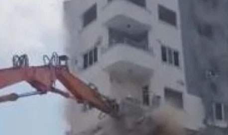 Kahramanmaraş merkezli, 6 Şubat’ta meydana gelen depremlerden etkilenen illerden Osmaniye’de ağır hasarlı binaların yıkımı ve moloz kaldırma işlemleri sürüyor. İş makineleriyle yıkımına başlanan Esenevler Mahallesi’ndeki 9 katlı Erat Apartmanı’nda, çalışmalar bugün de sürdü. Yıkım sırasında bina bir anda çöktü. Olayda can kaybı veya yaralanma olmazken, binanın çökme anı cep telefonu kamerasına yansıdı. Bölgedeki incelemelerinin ardından dün açıklama yapan Vali Erdinç Yılmaz, kentte 8 bin 809 ağır hasarlı bina olduğunu ve 1,5 ay içinde çalışmaların bitirilmesinin hedeflendiğini söyledi. DHA OSMANİYE