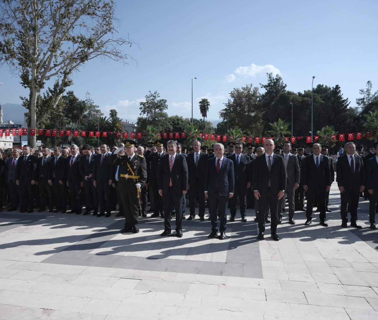 Cumhuriyetimizin kuruluşunun 99. Yıl Dönümü kutlamaları, Atatürk Anıtına çelenklerin sunulması ile başladı. Devlet Bahçeli Meydanında düzenlenen törene; Vali Dr. Erdinç Yılmaz, 25. ve 26. Dönem Osmaniye Milletvekili Prof. Dr. Ruhi Ersoy, 22. Dönem Osmaniye Milletvekili Necati Uzdil, Garnizon Komutanı Topçu Albay Hakan Kocabaş, Belediye Başkanı Kadir Kara, Cumhuriyet Başsavcısı Uygur Kaan Arısoy, Osmaniye Korkut Ata Üniversitesi Rektörü Prof. Dr. Turgay Uzun,  Vali Yardımcıları Dr. Ömer Faruk Günay ve Adem Yılmaz, İl Jandarma Komutanı Jandarma Albay Can Altundarak,  İl Emniyet Müdürü Ahmet Selçuk Okumuş, kamu kurum ve kuruluşları il müdürleri, sivil toplum kuruluşları temsilcileri, siyasi parti temsilcileri, öğrenciler ve vatandaşlar katıldı.