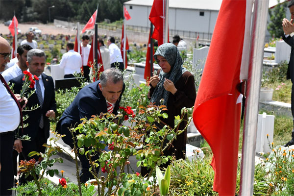 Belediye Asri Mezarlığı’ndaki ziyarete Vali Erdinç Yılmaz, Belediye Başkanı İbrahim Çenet, Milletvekili Seydi Gülsoy, 27. Dönem AK Parti Osmaniye Milletvekili İsmail Kaya, Garnizon Komutanı ve 12’nci Komando Tugay Komutan Vekili Topçu Albay Hakan Kocabaş, kamu kurum ve kuruluşları il müdürleri, sivil toplum kuruluşları temsilcileri, siyasi parti temsilcileri, gaziler ve şehit yakınları katıldı. İlk program, Osmaniye Şehitliği’nde gerçekleştirildi. Kur’an-ı Kerim okunmasının ardından şehitler için dua edildi. Daha sonra Vali Yılmaz, Belediye Başkanı İbrahim Çenet, Milletvekili Seydi, Gülsoy ve protokol mensupları ziyaret ettikleri şehit mezarlarına karanfil bıraktı. Şehit yakınlarının bayramlarını kutlayan Vali Erdinç Yılmaz ve Belediye Başkanı İbrahim Çenet, şehitlere Allah’tan rahmet dileyip, taziyelerini ilettiler.
