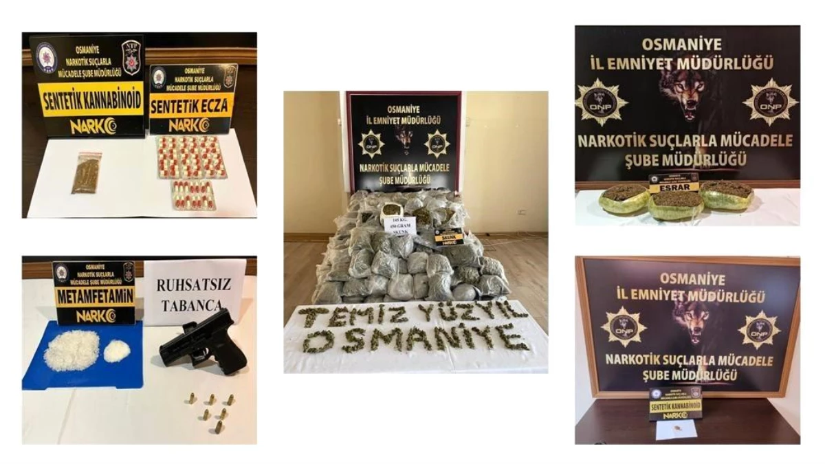 Osmaniye’de polisin uyuşturucu satıcılarına yönelik düzenlediği 15 ayrı operasyonda 18 şüpheli yakalandı.Narkotik Suçlarla Mücadele Şube Müdürlüğü, İstihbarat Şube Müdürlüğü, Kadirli ve Düziçi İlçe Emniyet Müdürlüğü ekiplerince, 28 Ağustos-3 Eylül tarihleri arasında uyuşturucu satıcılarına yönelik 15 ayrı operasyon düzenlendi. Yapılan aramalarda 67,83 gram metamfetamin, 145 kilo 450 gram skunk, 0,51 gram eroin, 14,44 gram bonzai, 4041,87 gram esrar, 56 adet sentetik ecza, 1 tabanca, 6 fişek ve 1 şarjör, 410 TL para ele geçirildi.Emniyetteki işlemleri tamamlanan 18 şüpheli adliyeye sevk edildi.