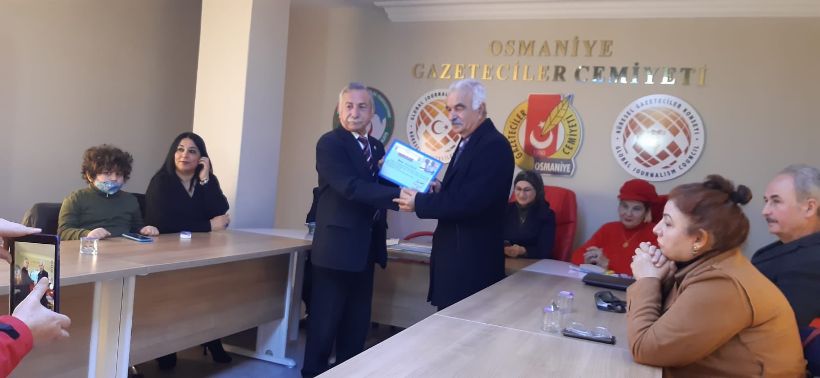 Osmaniye Gazeteciler Cemiyeti, Gökhan Erkmen toplantı salonunda düzenlenen programa katılanlara başarı belgeleri dağıtıldı.