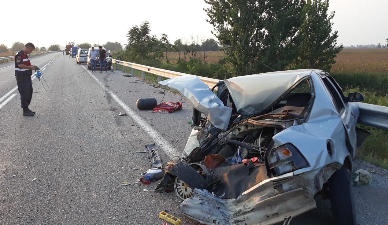 Paramparça olan otomobildeki 4 kişi hafif sıyrıklarla kurtuldu