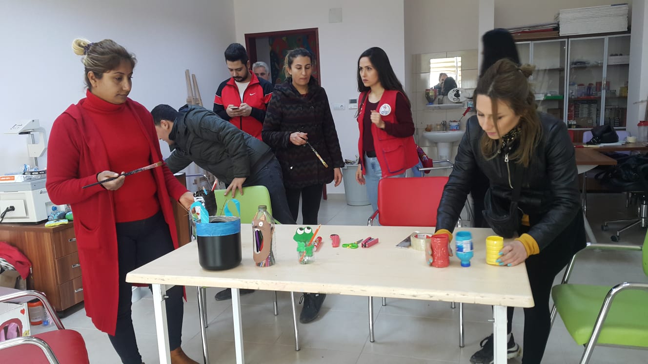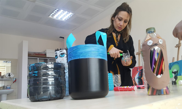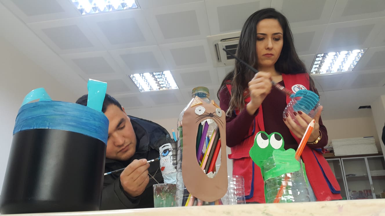 Merkezde eğitim gören gençler, hazırladıkları “Her atık çöp değildir” projesi kapsamında sokak ve çöplerden atık pet şişeleri topluyor. Pet şişeleri kesip farklı renklere boyayan gençler bunları kuş yemliği, saksı, kalemlik ve oyuncak gibi ürünlere dönüştürüyor.