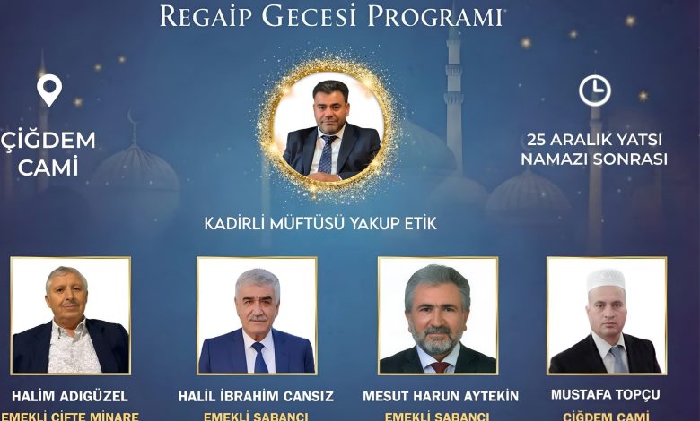 Regaip Kandili’nde Adana’nın ünlü mevlüthanları Kadirli’de olacak.