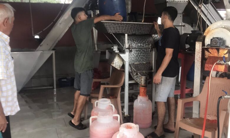 İşletme sahipleri biber salçası ve nar ekşisi çıkarmak isteyen vatandaşlara ücret karşılığı yardımcı oluyorlar.