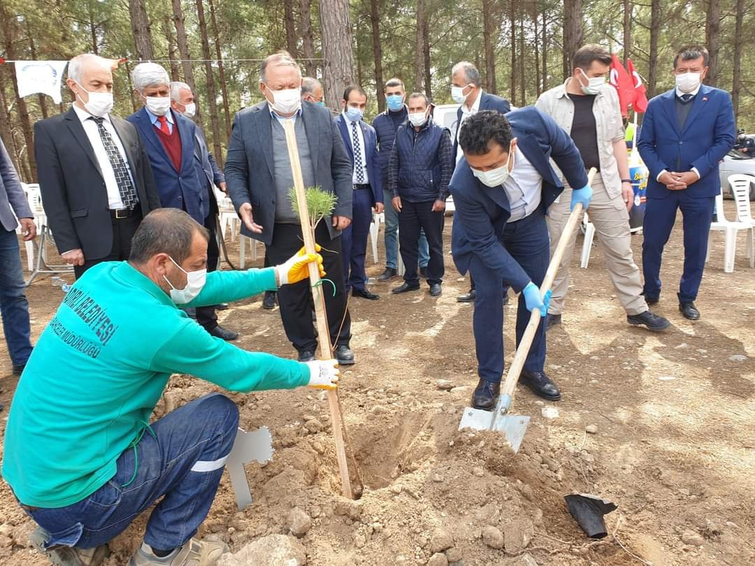Kadirli Belediyesi tarafından hazırlanan “Her şehit bir fidan” projesi kapsamında Sülemiş çamlığında çıkan yangında zarar gören alana şehitlerimizin isimlerinin verildiği fidanlar toprakla buluştu.