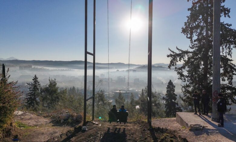 Sülemiş Tepesi’nde dev salıncakta şehir manzarası, ziyaretçileri mest ediyor. Kadirli’de özellikle akşam saatlerinde yoğun ilgi gören noktada romantik anlar da yaşanıyor.