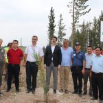 Daha sonra Kaymakam Coşkun ve beraberindekiler 15 Temmuz Demokrasi Şehitleri Hatıra Ormanı’nda, şehitlerin adının verildiği çam ağaçlarını toprakla buluşturdu.