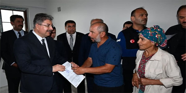 Sumbas İlçesi Mehmetli Beldesinde Cumhuriyet Mahallesi, Armağanlı Mahallesi ve Yeni Mahallede yapımı tamamlanan 36 köy konutunun anahtarı Vali Dr. Erdinç Yılmaz tarafından hak sahiplerine teslim edildi. Vatandaşlara konutlarında sağlık ve mutluluk içinde oturmalarını temenni eden Vali Yılmaz, “Konutlarımız çok iyi yapılmış, kıymetli hemşerilerimizin rahat edebilecekleri çok güvenlikli konutlar. Güle güle otursunlar, inşallah mutluluk huzur içinde otursunlar. Bütün hemşerilerimiz konutlarına kavuşana kadar hızla çalışmaya devam edeceğiz. İnşallah bu yılın sonunda konutlarımızın yüzde yüze yakınını teslim etmiş olacağız. Hayırlı uğurlu olmasını diliyorum” dedi.
