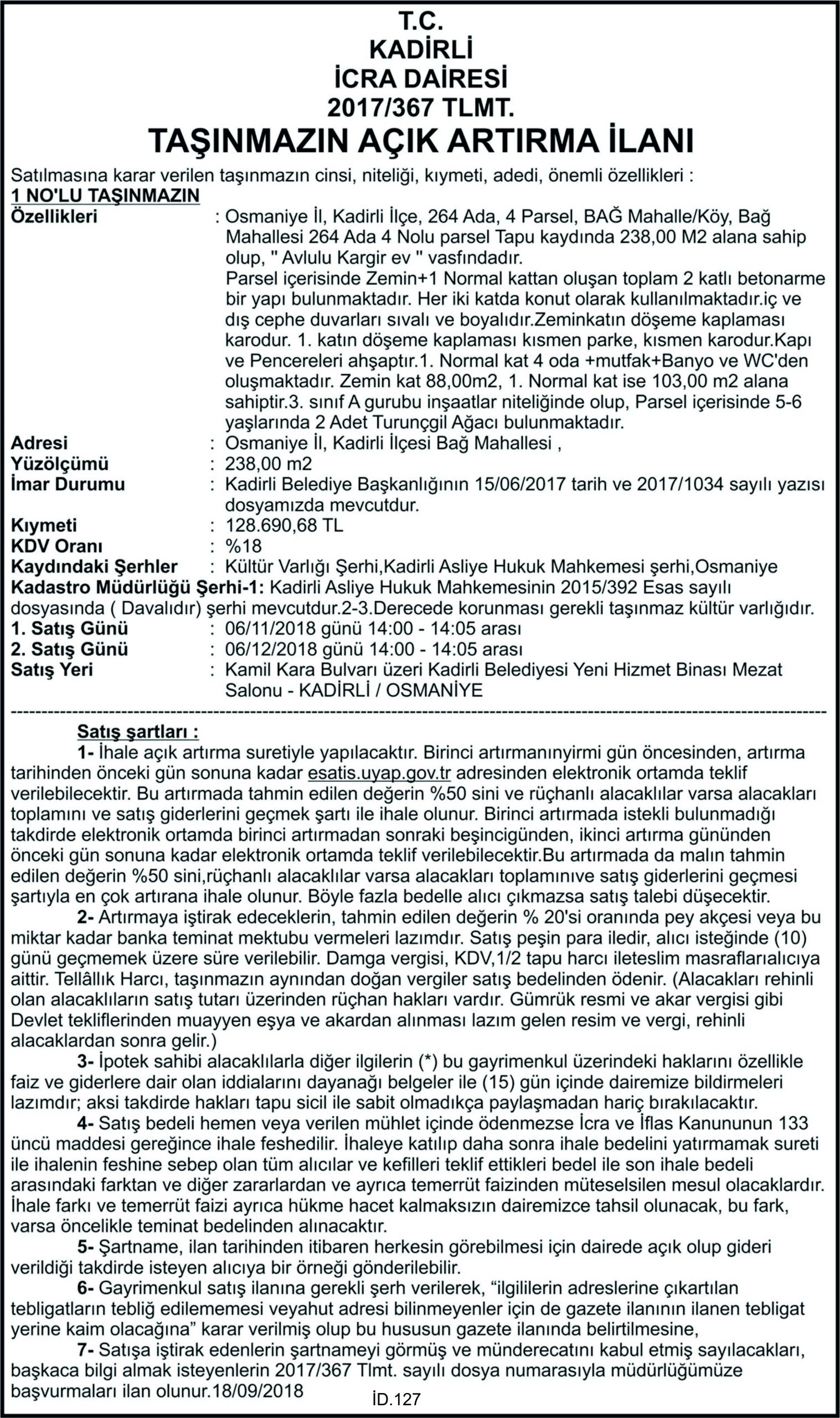 Anasayfa/Resmi İlanlar/T.C.KADİRLİ İCRA DAİRESİ 2017/367 TLMT. Resmi İlanlar T.C.KADİRLİ İCRA DAİRESİ 2017/367 TLMT. Sıla Gazetesi Bir e-posta göndermek 20 Eylül 2018 54 Bir dakikadan az Facebook X WhatsApp Sıla Gazetesi Bir e-posta göndermek 20 Eylül 2018 54 Bir dakikadan az Facebook X WhatsApp Paylaş Facebook X E-Posta ile paylaş Yazdır