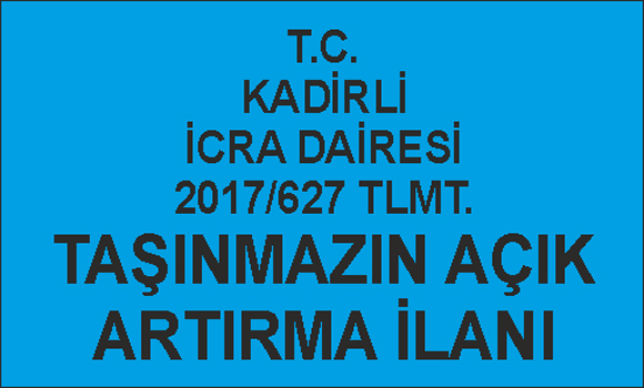 T.C. KADİRLİ İCRA DAİRESİ 2017/627 TLMT. TAŞINMAZIN AÇIK ARTIRMA İLANI