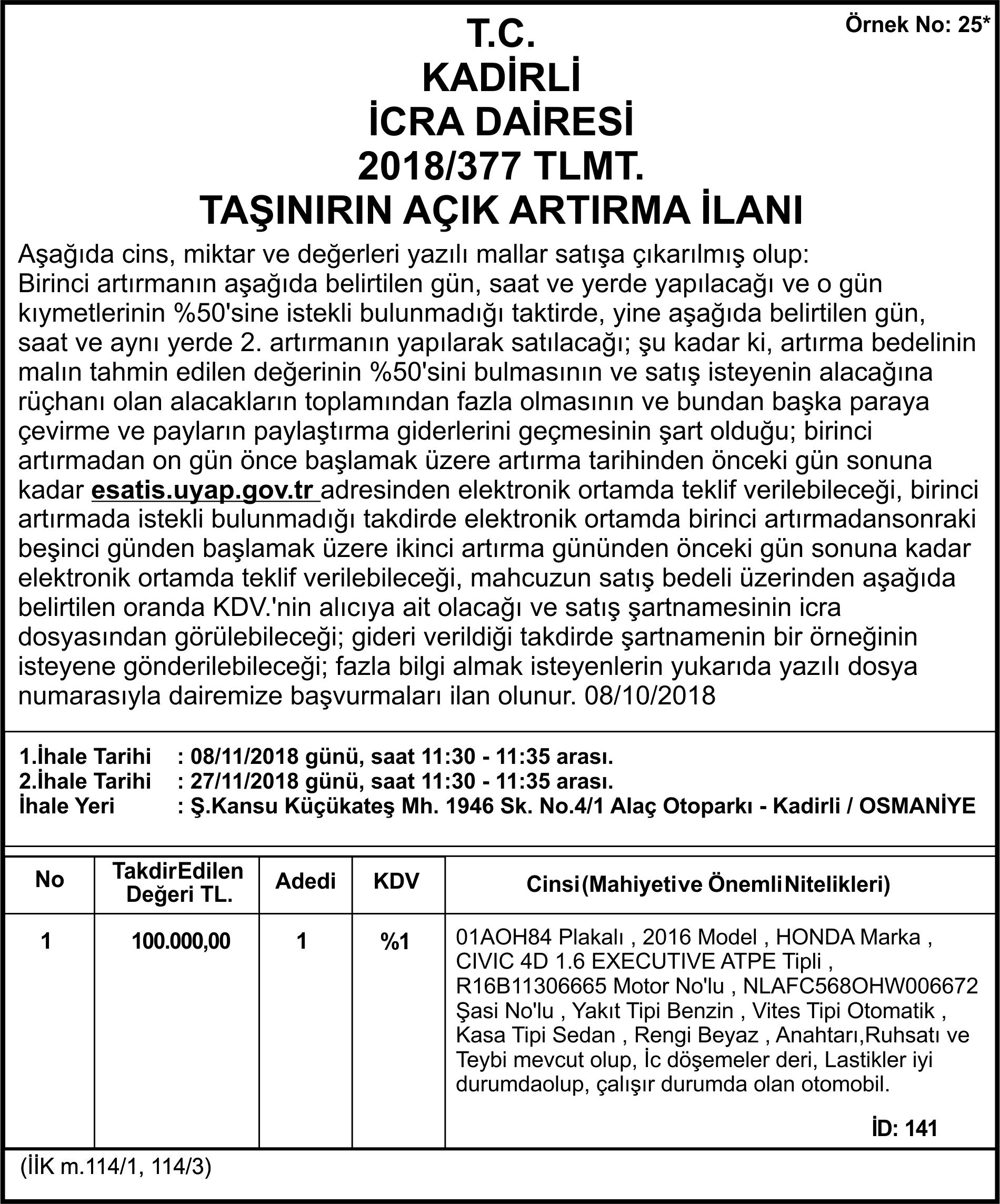Anasayfa/Resmi İlanlar/T.C. KADİRLİ İCRA DAİRESİ 2018/377 TLMT. TAŞINIRIN AÇIK ARTIRMA İLANI Resmi İlanlar T.C. KADİRLİ İCRA DAİRESİ 2018/377 TLMT. TAŞINIRIN AÇIK ARTIRMA İLANI Sıla Gazetesi Bir e-posta göndermek 10 Ekim 2018 52 Bir dakikadan az Facebook X WhatsApp Sıla Gazetesi Bir e-posta göndermek 10 Ekim 2018 52 Bir dakikadan az Facebook X WhatsApp Paylaş Facebook X E-Posta ile paylaş Yazdır