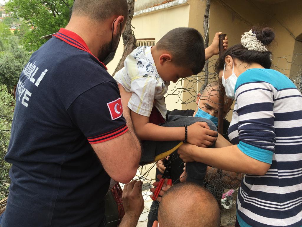 TELE TAKILAN ÇOCUK İTFAİYE TARAFINDAN KURTARILDI