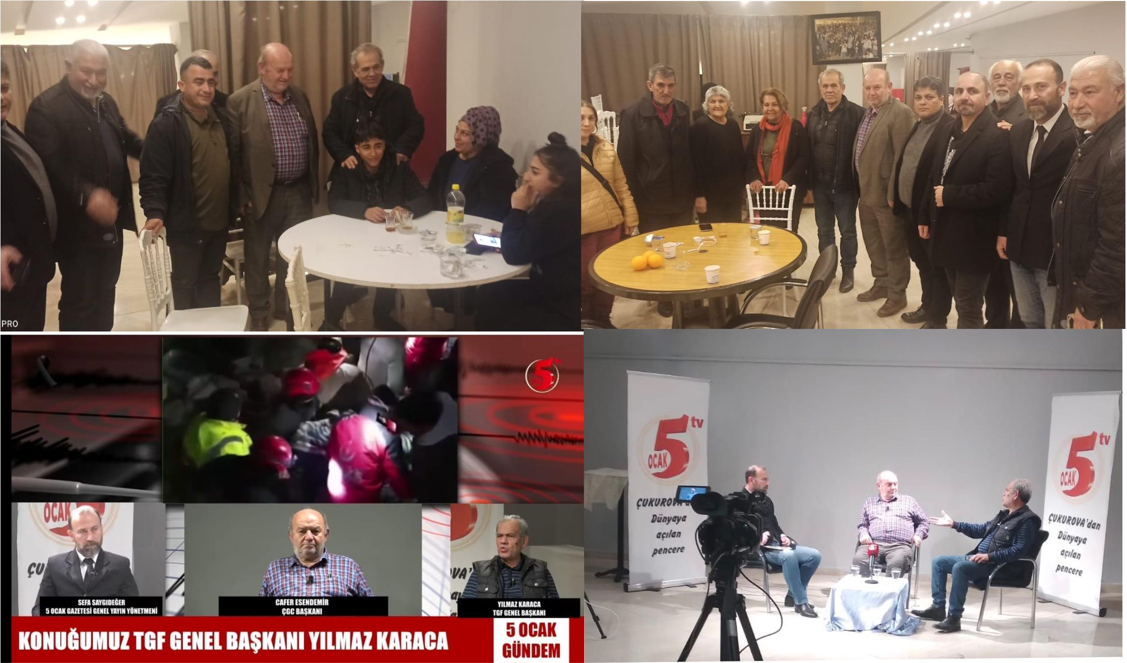 Cemiyetin sosyal tesislerinde kalan deprem mağduru gazeteciler ve vatandaşlara geçmiş olsun dileklerini ileten Genel Başkan Yılmaz Karaca, daha sonra Genel Başkan Vekili Cafer Esendemir ile birlikte 5 Ocak TV’de canlı yayına katılarak Gazeteci Sefa Saygıdeğer’in sorularını yanıtladı.