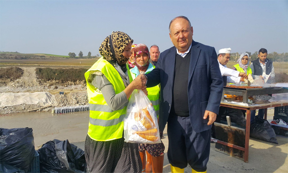 Kadirli’de Belediye Başkanı Ömer Tarhan, Turp sektöründe çalışan işçilere sucuk ekmek pişirip ikram ettirdi. Türkiye’nin turp ihtiyacının %70’nin sağlandığı Kadirli’de Belediye Başkanı Ömer Tarhan, Savrun Çayındaki yıkama ve paketleme havuzlarında kurdurduğu sucuk ekmek tezgahları ile soğuk suda çalışan işçilere sucuk ekmek ikramında bulundu. Yüzlerce turp işçisiyle birlikte sucuk ekmek yiyen Başkan Tarhan yaptığı açıklamada şunları kaydetti; “ 28 Ocakta yapmayı planladığımız ancak Şanlı Ordumuzun Afrin’e girmesinden dolayı iptal ettiğimiz Sucuk Ekmek festivalinde kullanacağımız sucuk ekmeklerin bir kısmını Şanlı Ordumuza mensup Mehmetçiklere ve bir kısmını da yaklaşık 4 ay Savrun çayında soğuk suda çalışarak evine ekmek parası götüren Turp işçilerimize ikram ettik. Ayrıca turp işçilerimize bir çanta içerisinde Eşarp, çorap ve eldiven bulunan bir hediye takdim ettik. Biz turp işçilerimizi hiçbir zaman yalnız bırakmadık” dedi. Öğle arasında tezgahlarda pişirilen sucuklar turp işçilerine ikram edildi. Efendi ERKAYIRAN