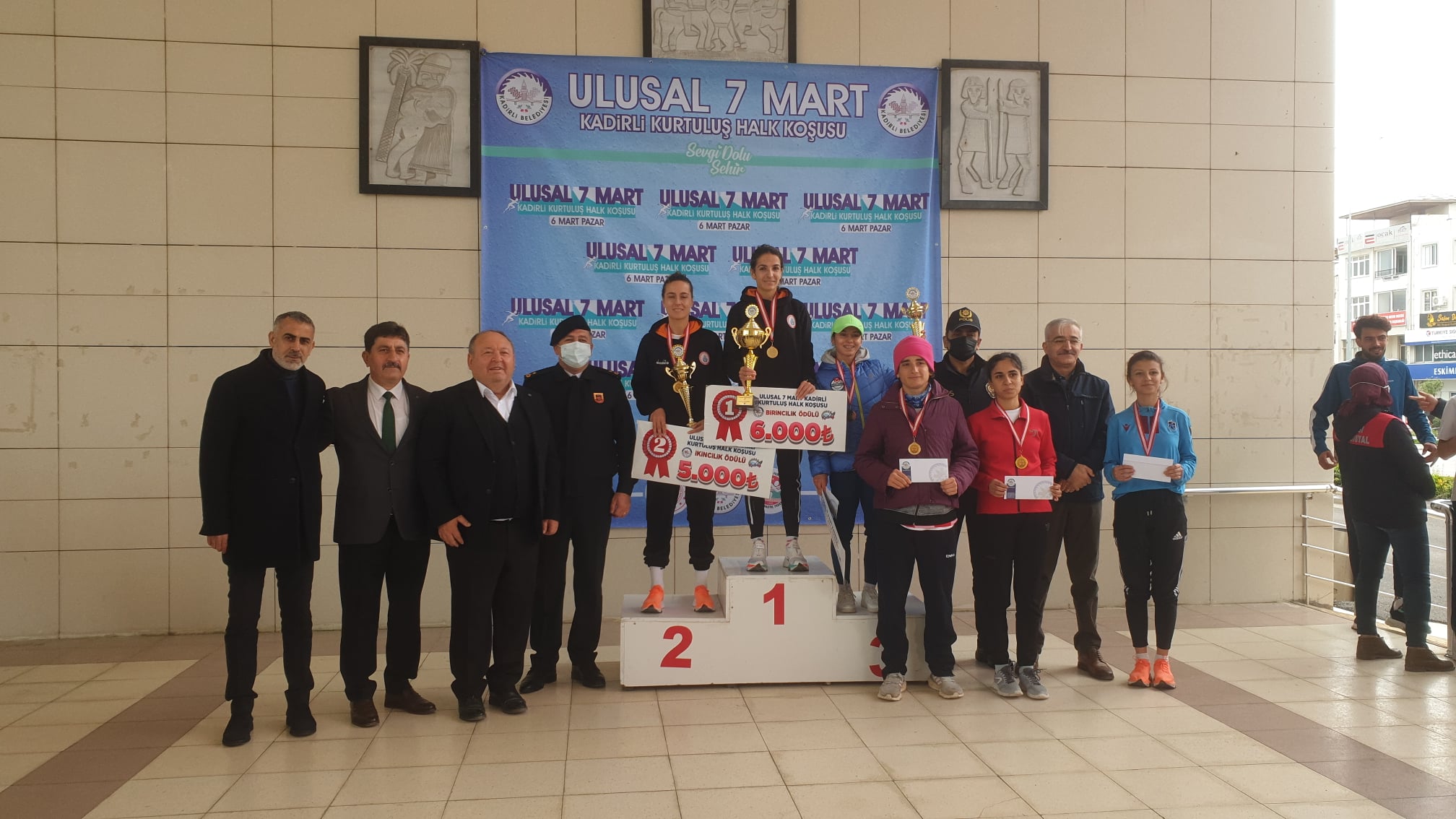 Cemal Paşa Mahallesinden başlayıp Kadirli Belediyesi önünde biten ve 5 km koşan kadınlarda 1. Bahar Atalay, 2. Nuran Satılmış, 3. Sabriye Güzelyurt, 4. Rahime Tekin, 5.Sifanur Yiğit ve 6. Sevgi Erdem oldu. Dereceye giren ve birinci olan sporcuya 6 bin, 2.ye 5 bin, 3.ye 4 bin, 4.ye 3 bin 5.ye 2 bin ve 6.ya bin Tl ödül kazandı.
