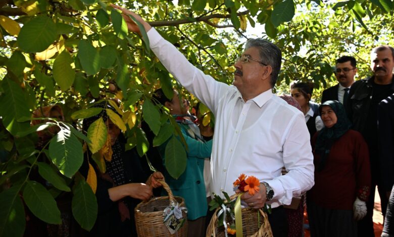 VALİ DR. ERDİNÇ YILMAZ, KADIN ÇİFTÇİLER’LE CEVİZ HASADI YAPTI