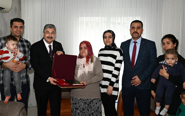 Şehidimizin ailesi ile bir süre görüşen Vali Dr. Erdinç Yılmaz, Şehidimize Allah’tan rahmet dileyerek, “Aziz Şehitlerimize olan borcumuzu hiçbir zaman ödeyemeyiz. Şehitlerimizin hatıralarını yaşatmak, ailelerinin yanında olmak hepimizin boynunun borcudur. Kapımız, gönlümüz Şehitlerimizin ailelerine her daim açıktır. Şehidimize, Allah gani gani rahmet eylesin, mekânı cennet olsun. Bu vesile ile Şehitlerimize Allah’tan rahmet, ailelerine başsağlığı ve sabırlar diliyorum.”diye konuştu. Ziyaret sırasında Vali Yılmaz, Şehidimizin Ailesine Kur’an-ı Kerim ve Türk Bayrağı takdim etti.