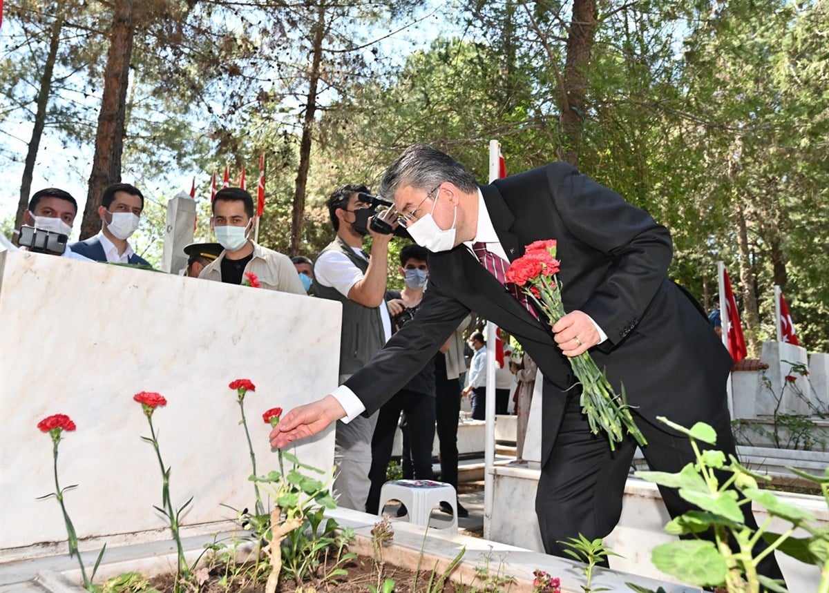 Şehitlerimizin kabirlerini ziyaret öncesinde Zafer Camii İmam Hatibi Mahmut Durmuş tarafından Kur’an-ı Kerim okundu. Daha sonra İl Müftü Vekili Ahmet Demirer şehitlerimiz  için dua etti.  Yapılan duanın ardından, Vali Dr. Erdinç Yılmaz ve protokol mensupları şehitlerimizin kabirlerini ziyaret ederek, karanfil bıraktılar.