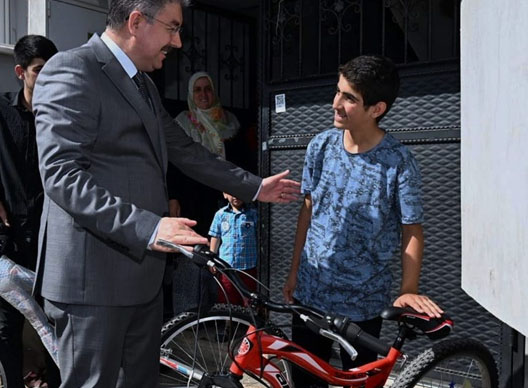 VALİ YILMAZ, ABDÜLHAMİT’E BİSİKLET HEDİYE ETTİ