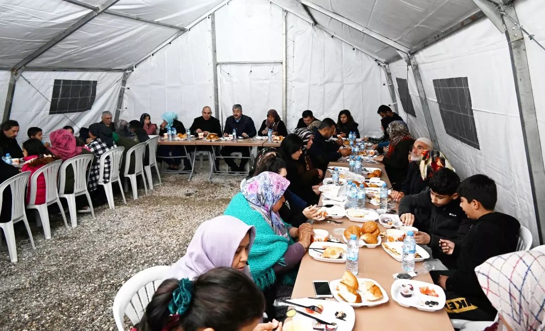 Kahramanmaraş merkezli 6 Şubat’taki depremlerin vurduğu Osmaniye’de evleri yıkılan ya da ağır hasar görünce çadır ve konteynerlere yerleştirilen vatandaşlar, ramazan ayının ilk sahurunu karşıladı. Osmaniye Valisi Erdinç Yılmaz ile koordinatör olarak bölgede görev yapan Niğde Valisi Mustafa Koç, sahur sofrasında depremzedelerle buluştu. Devlet Su İşleri (DSİ) Çadır Alanı’ndaki sahurda, aileler çocuklarıyla ilk oruçları için niyet etti.Osmaniye Valisi Yılmaz, çadırlarda ve konteynerlerde kalan vatandaşlara yönelik ramazan ayı boyunca hem sahurda hem de iftarda yemek çalışmalarının süreceğini ifade etti.