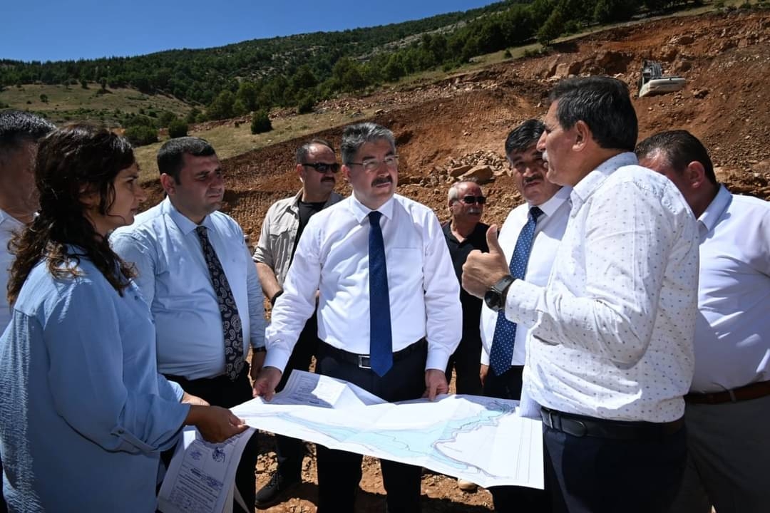 VALİ YILMAZ GÖLET İNŞAATINDA İNCELEMELERDE BULUNDU