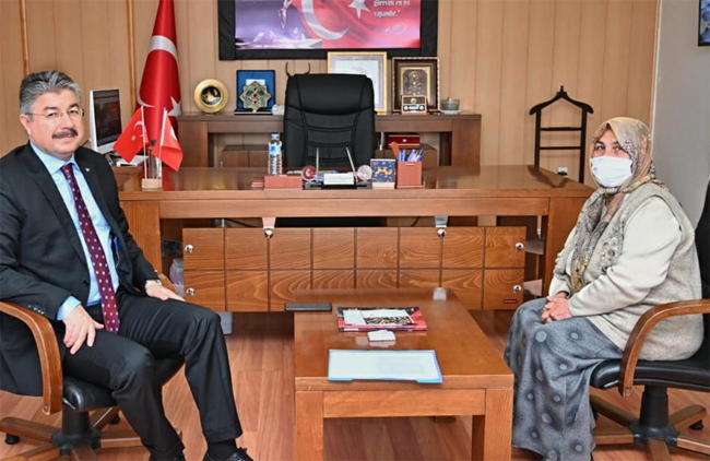 Vali Yılmaz, Sumbas Kaymakamlığını ziyareti sırasında Kaymakamlıkta bulunan, Şehidimiz Jandarma Uzman Çavuş Umut Eyvaz’ın Annesi Lütfiye Eyvaz ile de görüştü. Şehidimizin annesi Lütfiye Eyvaz ile bir süre sohbet eden Vali Yılmaz, Şehidimize Allah’tan rahmet, ailesine de sabırlar dileyerek, “Aziz şehitlerimize olan borcumuzu hiçbir zaman ödeyemeyiz. Şehitlerimizin hatıralarını yaşatmak, ailelerinin yanında olmak hepimizin boynunun borcudur. Kapımız, gönlümüz şehitlerimizin ailelerine her daim açıktır. Şehidimize, Allah gani gani rahmet eylesin, mekânı cennet olsun. Bu vesile ile şehitlerimize Allah’tan rahmet, ailelerine başsağlığı ve sabırlar diliyorum.”diye konuştu.
