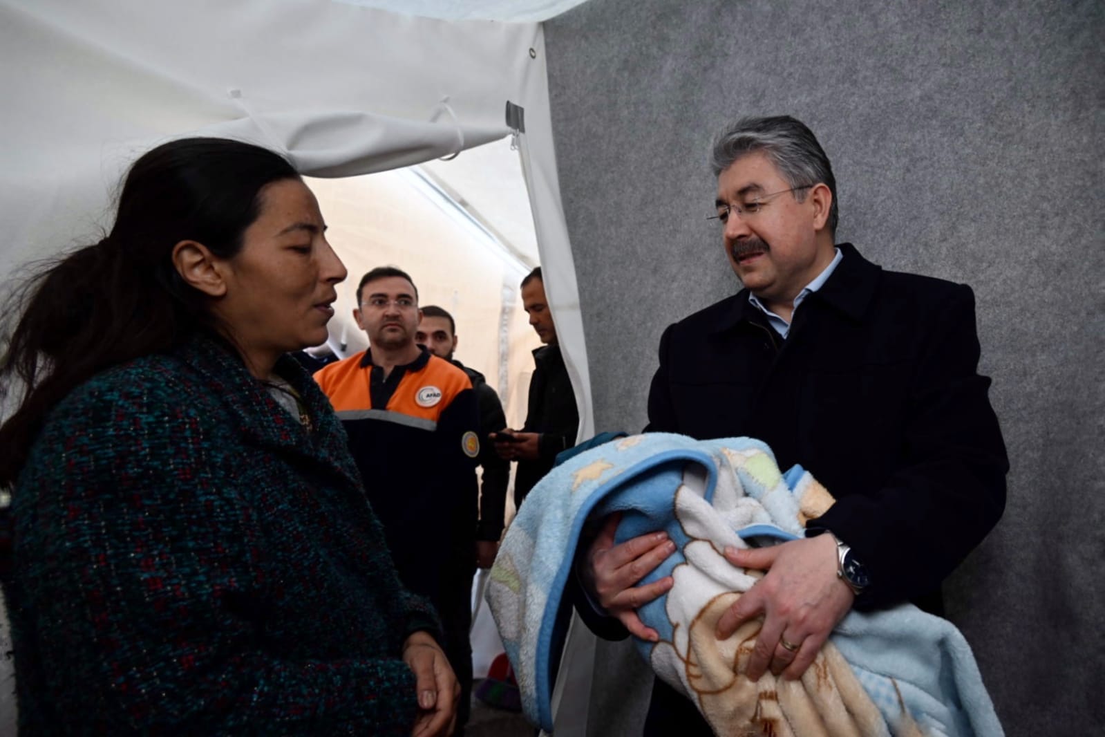 Osmaniye’deki Atatürk Lisesi çadır alanındaki deprem çadırında dünyaya gelen Umut bebek ve ailesini ziyaret eden Vali Dr. Erdinç Yılmaz, “Umut bebek bizim umudumuz olsun” dedi