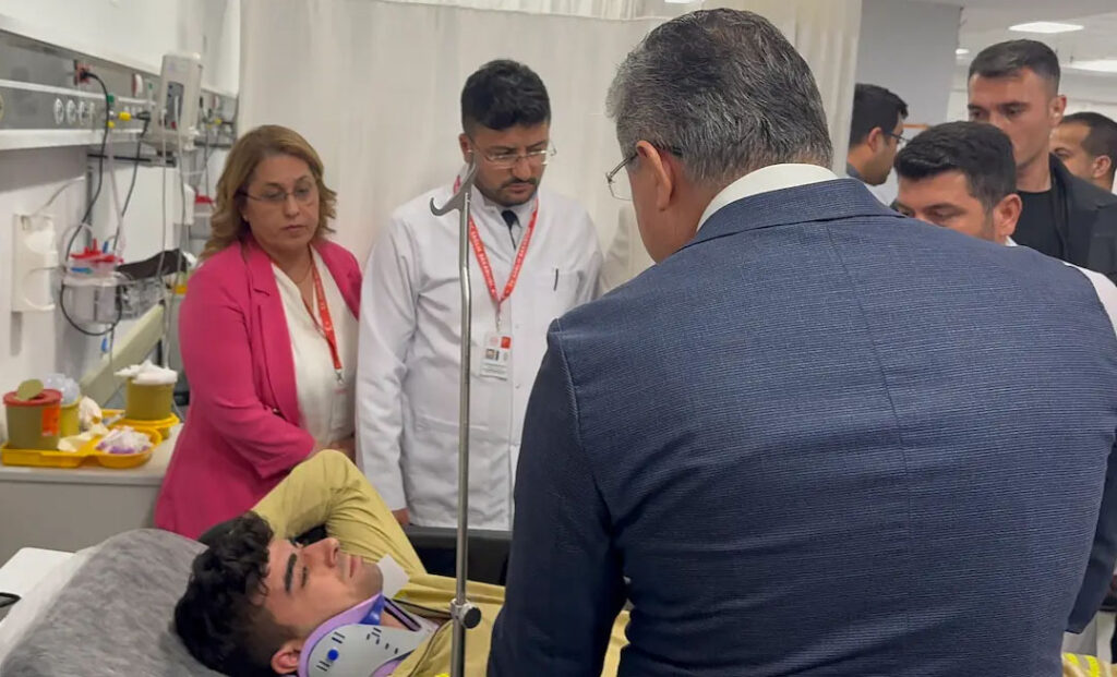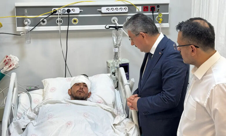 Osmaniye Valisi Dr. Erdinç Yılmaz, orman yangınına müdahale sırasında kaza geçiren yaralı orman işçilerini hastanede ziyaret etti.