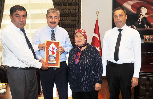 Vali Dr. Erdinç Yılmaz’ı makamında ziyaret eden Türkiye Harp Malulü, Şehit Dul ve Yetimleri Derneği Osmaniye Şubesi Başkanı Durmuş Öksüz ve Dernek Üyeleri, Vali Yılmaz’a şehit ailelerine gösterdiği yakınlıktan dolayı plaket takdim ettiler.