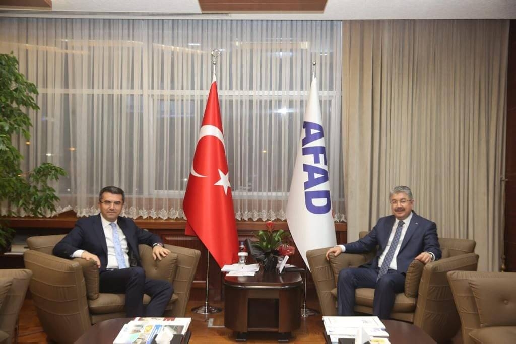 Osmaniye Valisi Dr. Erdinç Yılmaz, AFAD Başkanı Okay Memiş’i makamında ziyaret etti. Cumhurbaşkanı Recep Tayyip Erdoğan’ın tensipleriyle Afet ve Acil Durum Yönetimi (AFAD) Başkanlığına atanan, Erzurum eski Valisi Okay Memiş’i tebrik ederek “Hayırlı olsun” dedi. Görüşmede asrın felaketinin ardından Osmaniye’de yürütülmekte olan çalışmalar değerlendirilirken yeni AFAD Başkanı Okay Memiş, Osmaniye Valisi Dr. Erdinç Yılmaz’ın ziyaretinden duyduğu memnuniyeti ifade ederek teşekkür etti.
