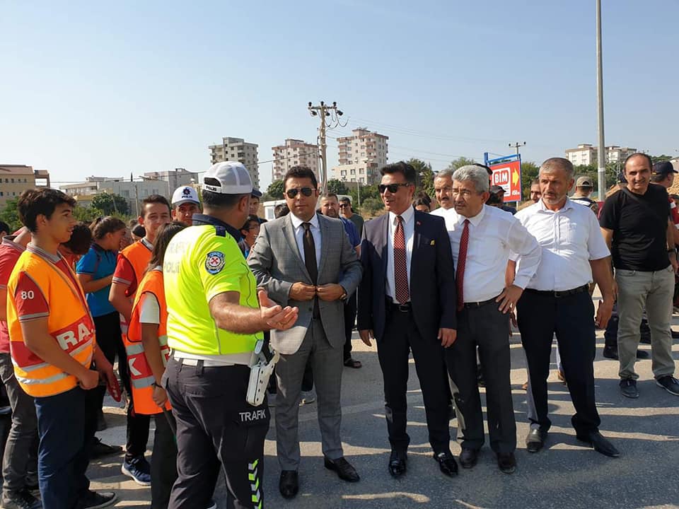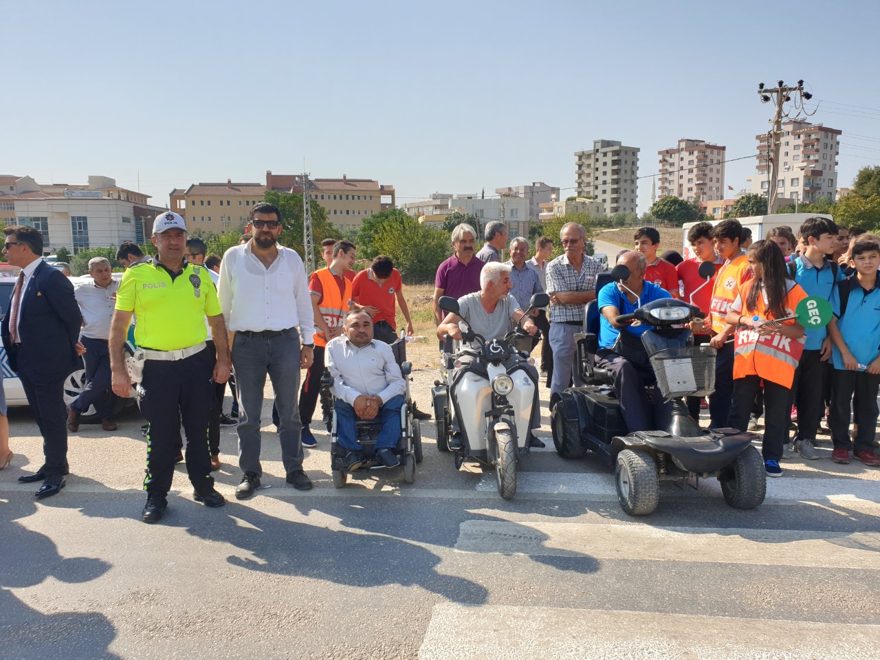 “Yaya Güvenliğinin Nöbetçisiyiz” sloganıyla düzenlenen etkinlikte Kaymakam Arık ve protokol tarafından yaya geçidinde araçlar durdurularak broşür dağıtımıyla birlikte sürücüler ve yayalar bilinçlendirildi.