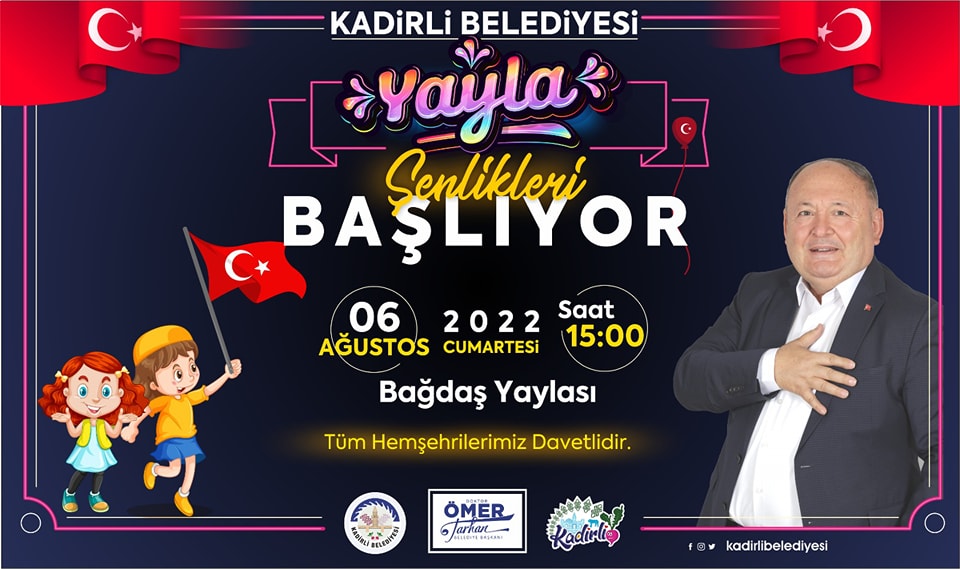 Kadirli Belediyesi tarafından 6 Ağustos 2022 Cumartesi Günü Saat 15:00’de Bağdaş Yaylasında “Yayla Şenlikleri” başlıyor.
